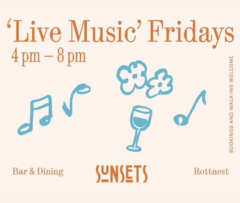 Head to Sunsets Rottnest at The Lodge Wadjemup, for all local artists playing live easy-going sets every week.
